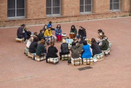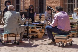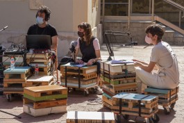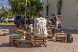 The central element that acts as a trigger for the different encounters is a deployable device/sculpture, consisting of a series of modular structures. These modules are made from discarded or found materials, such as wood, plywood, cork, and plastic, among others. Reassembled and repurposed, they take the form of urban furniture in various forms: chairs, tables, benches, steps, and so on, which are occupied by participants. Experimentation with waste and processes of resignification of materials informed by sociological, anthropological, and/or artistic research are common features of Pimiento and Montesinos' artistic practices, which now converge with the aim of generating a collaborative space for communication and knowledge exchange.